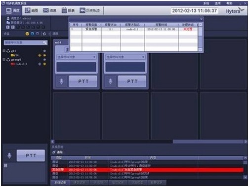 移动终端启动紧急报警功能后,调度员可以在界面上立即看到该移动终端的紧急报警提示,且优先接入紧急呼叫的语音。只有当调度员处理了该条报警,该移动终端才可以恢复正常状态。紧急报警提示有三种,可以设置全部。